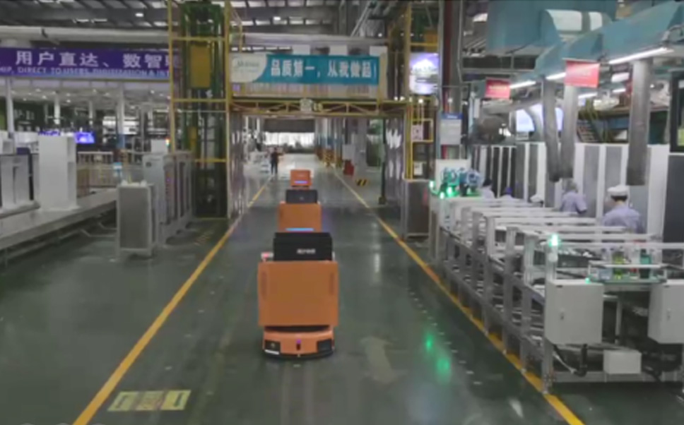 为车载冰箱物流配送打造的智能解决方案,,包含产中物流通过潜伏举升AMR搬运至线边,,,产后成品物流智能仓储,,,流程包含产中物流智能齐套入库,,,线边安灯叫料AMR智能配送至线边,,,成品入库、、、出库,,,通过无人堆高车机器人,,,智能仓储管理替代人工作业管理,,,实现更高存储、、、更高效率、、更具柔性化的解决方案。。